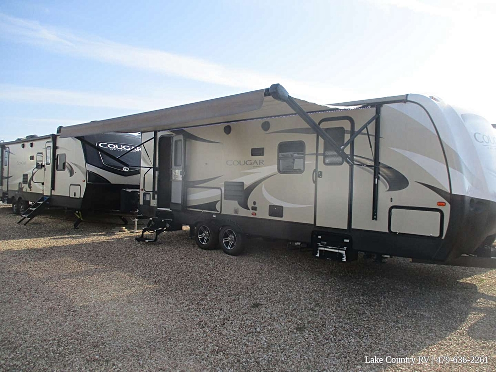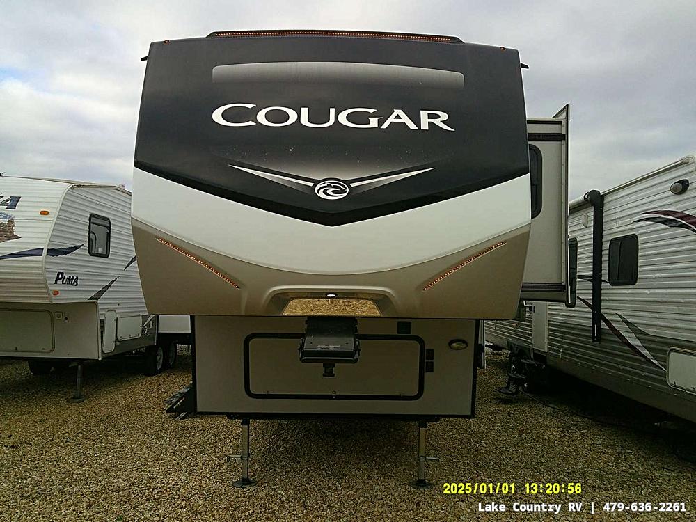 2019 COUGAR TRAILER WITH POWER AWNING WITH LED LIGHTS, 2 ENTRY DOORS, OUTSIDE KITCHEN WITH REFER AND GRILL, OUTSIDE SHOWER,…