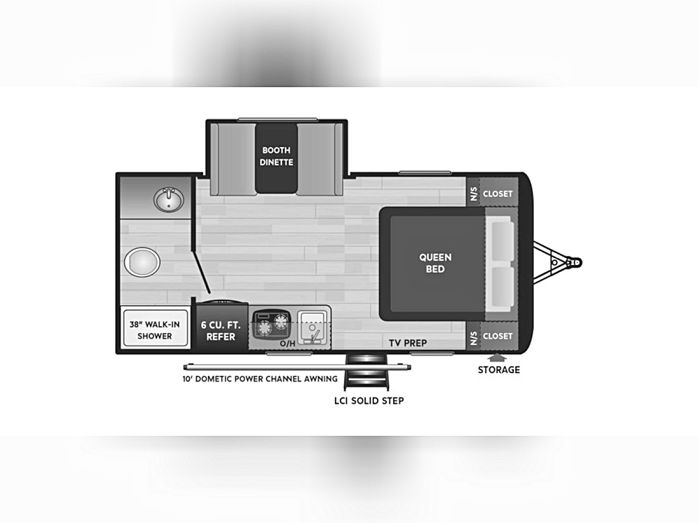 POWER MAIN AWNING, SOLID 2 STEP ENTRY STEP, 20 LB. LP BOTTLE, MANUAL TONGUE JACK, REAR STABILIZER JACKS, SPARE WHEEL…