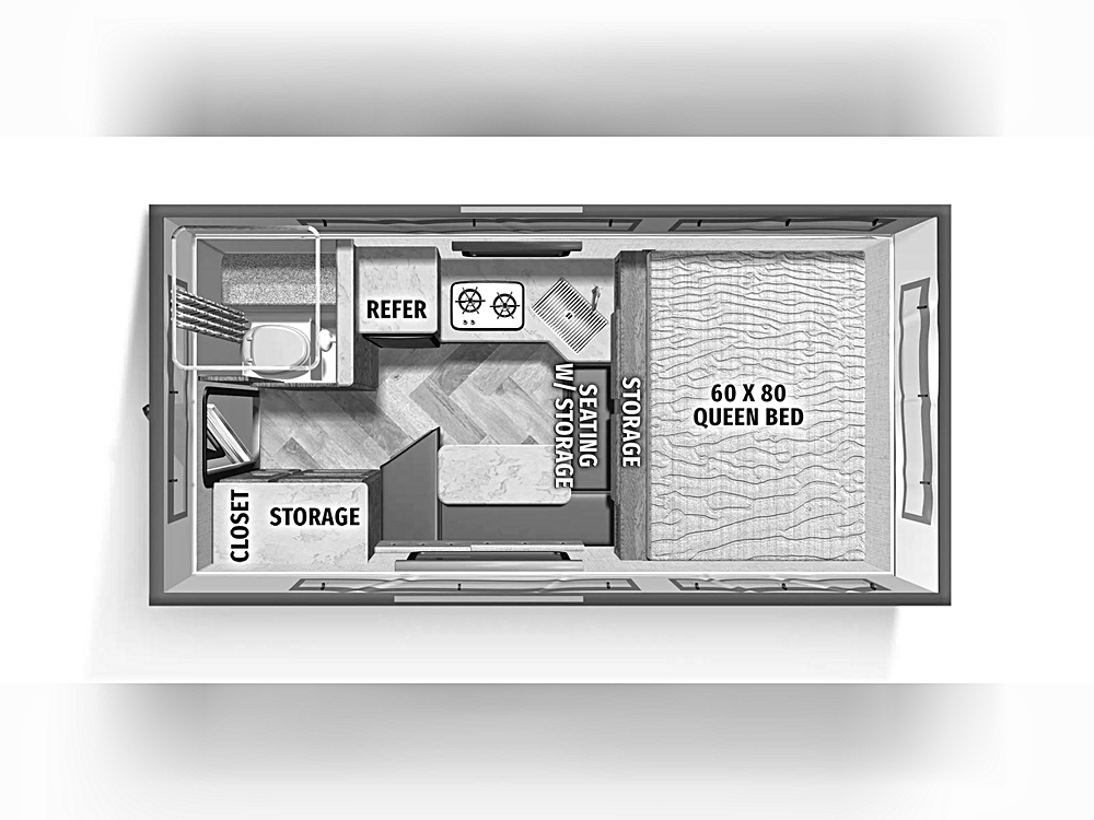Hi gloss grey exterior, soft side package, sleeps 3,CO2 detector, furnace 20,000 BTU, electric jacks, 100 AMP Lithium battery, on…