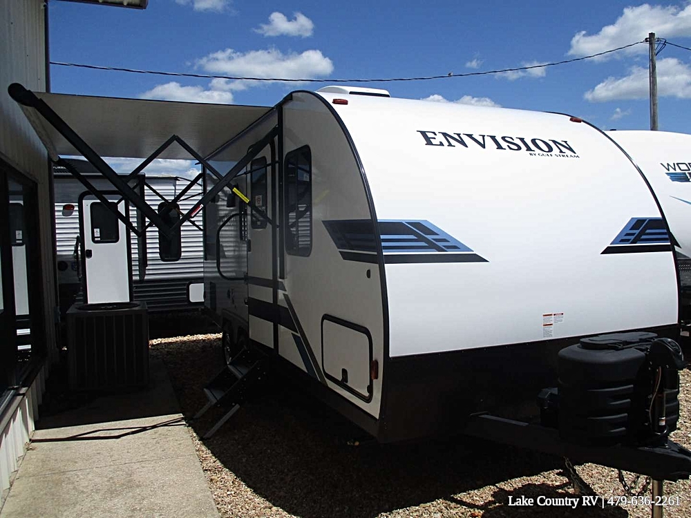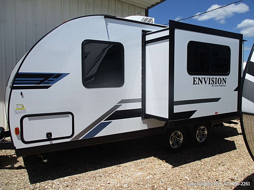 The 2023 Gulfstream Envision 21QBD is a lightweight travel trailer known for its affordability, compact size, and practical features. This…