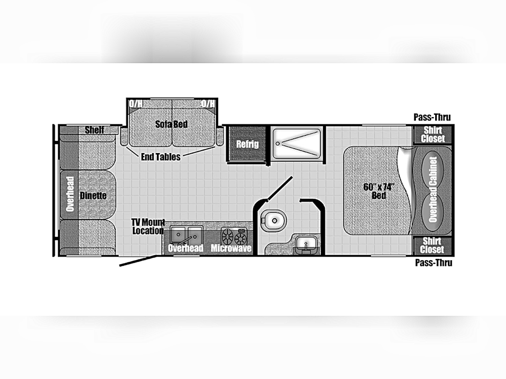 FIBERGLASS EXTERIOR, 15,000 BTU DUCTED FURRION A/C, GIRARD ON DEMAND TANKLESS WATER HEATER, SOLID STEP, INTERIOR / EXTERIOR TV MOUNT,…